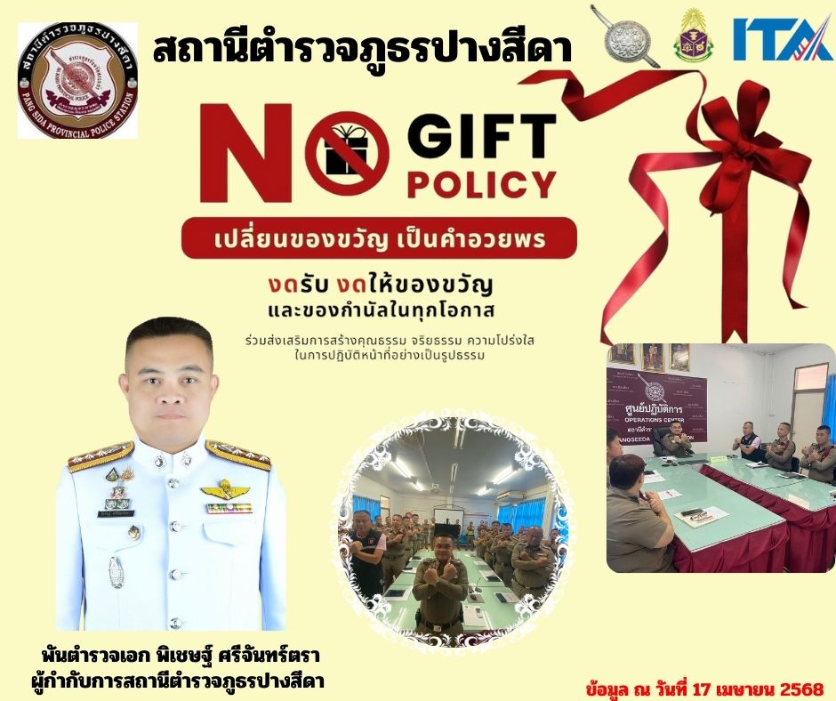 018ประกาศนโยบายต่อต้านการรับสินบน (Anti Bribery Policy) 17 เมษายน 2568 โดย admpangsida_srakaew / ไม่มีหมวดหมู่ ประกาศเจตนารมณ์ที่จะไม่รับของขวัญและของกำนัลทุกชนิดจากการปฏิบัติหน้าที่เรื่อง (No Gift Policy) Powered By EmbedPress Powered By EmbedPress นโยบายไม่รับของขวัญและของกำนัลทุกชนิด ณ จุดบริการและจุดประชาสัมพันธ์ Facebook iconFacebookTwitter iconTwitterLINE iconLine