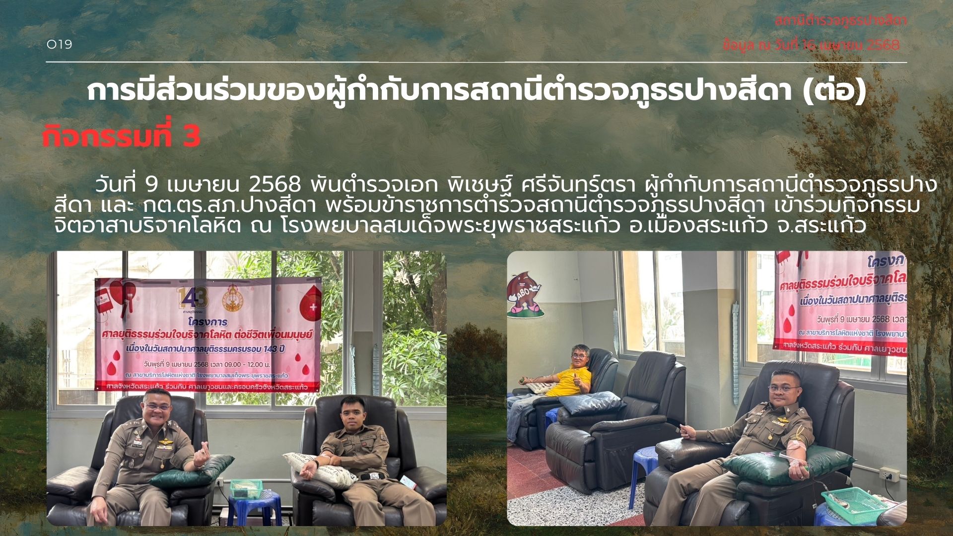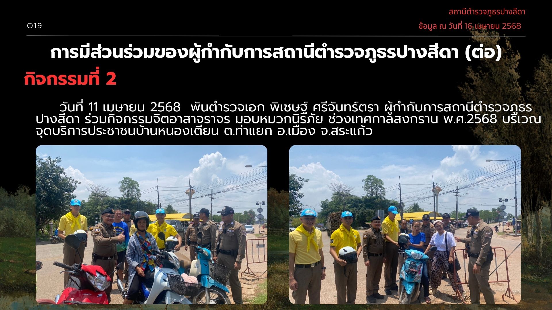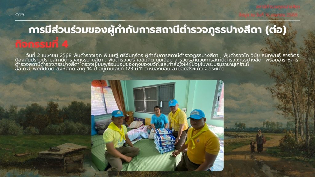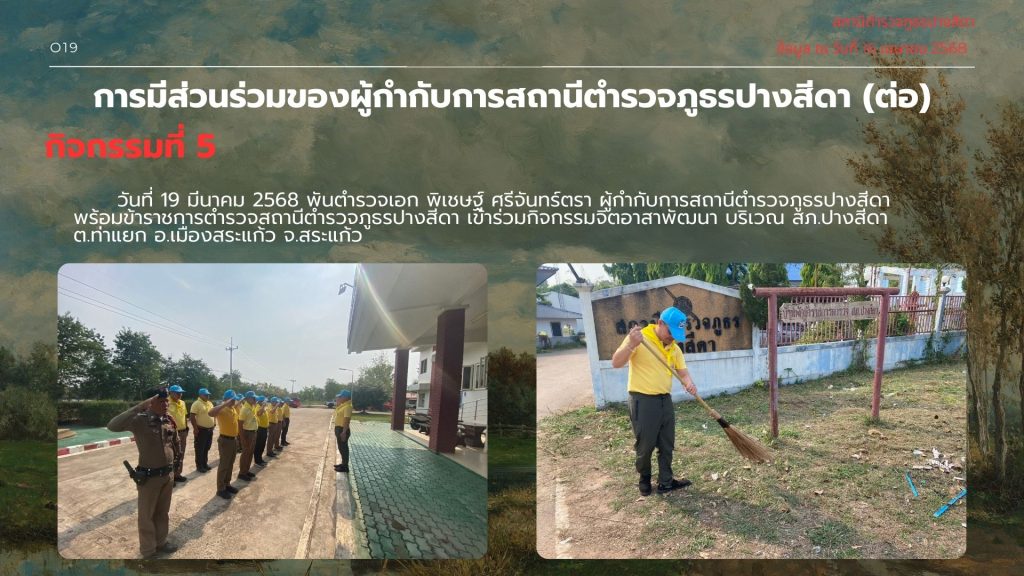 019การมีส่วนร่วมของหัวหน้าสถานีตำรวจ 17 เมษายน 2568 โดย admpangsida_srakaew / ไม่มีหมวดหมู่ Facebook iconFacebookTwitter iconTwitterLINE iconLine